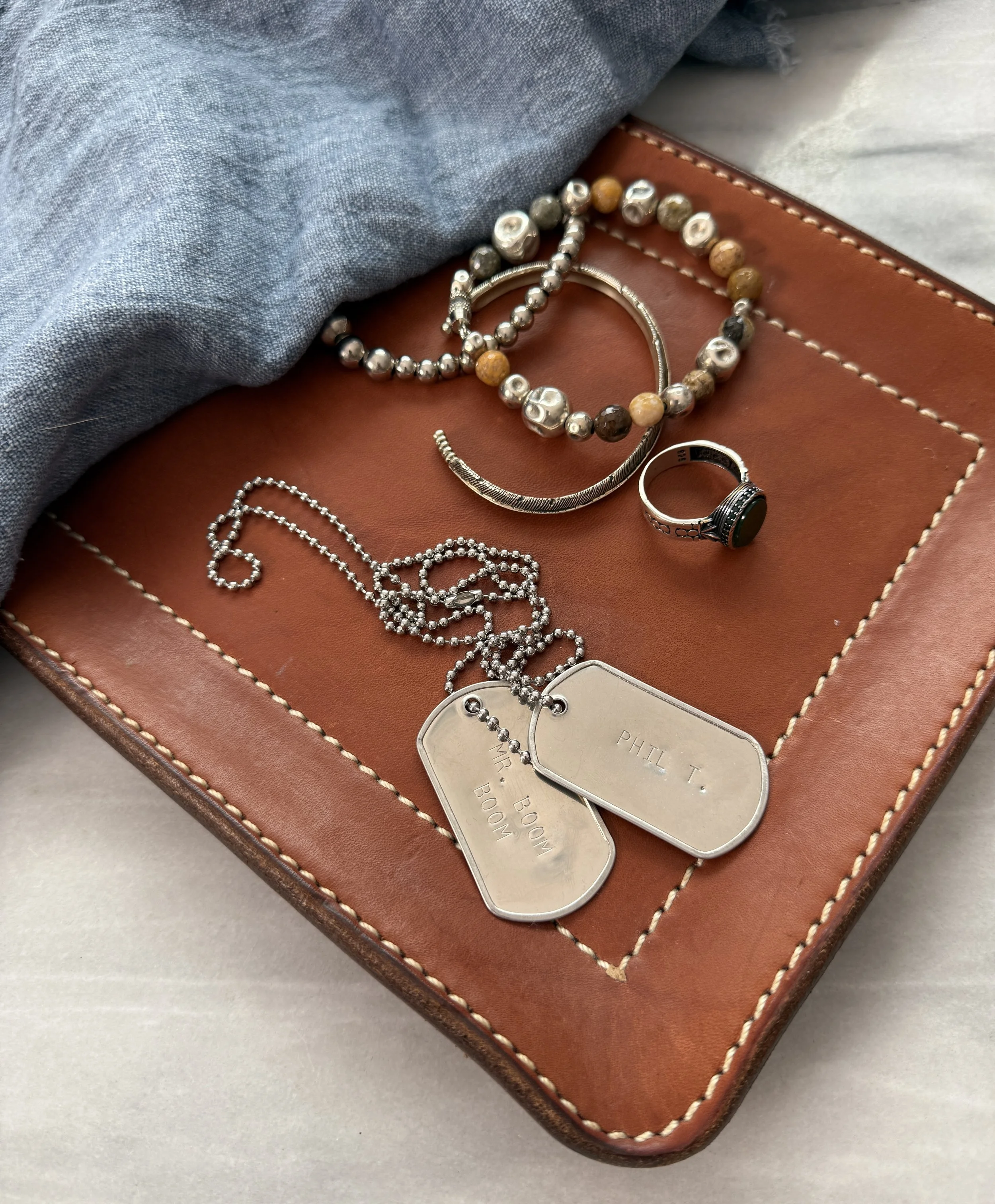 The Dog Tag Collection: Born from a pair of Vietnam-made dog tags once carried by a U.S. soldier during the Vietnam War, this collection draws on a history where personalization was done locally—stamped with phrases that carried humor, identity, and spirit.